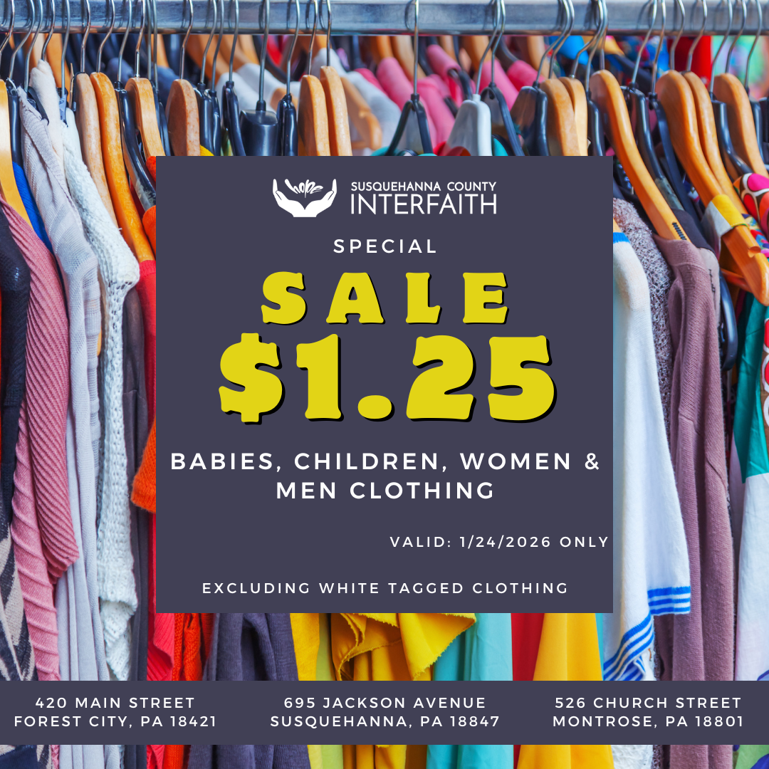 3pm-4pm at Susquehanna County Interfaith (Montrose)