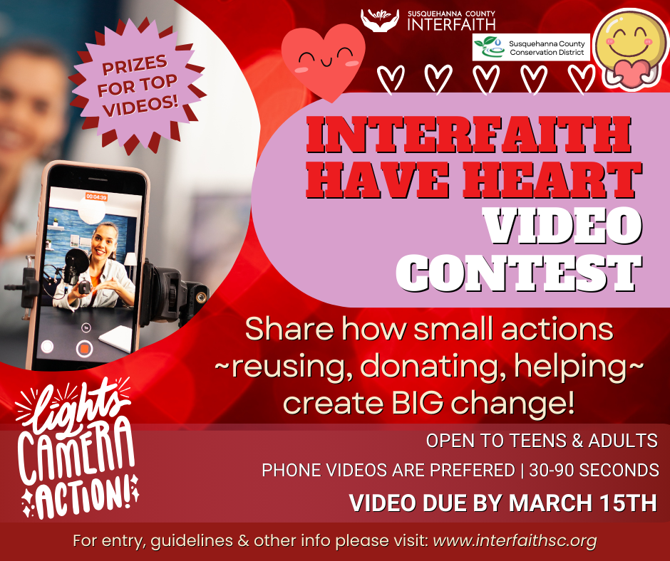 💡 Get creative, grab your phone/camera, and inspire others! One winning video will be chosen in each category—Middle School, High School, and Adults—to take home a special prize. We’re partnering with the Susquehanna County Conservation District to make this happen!