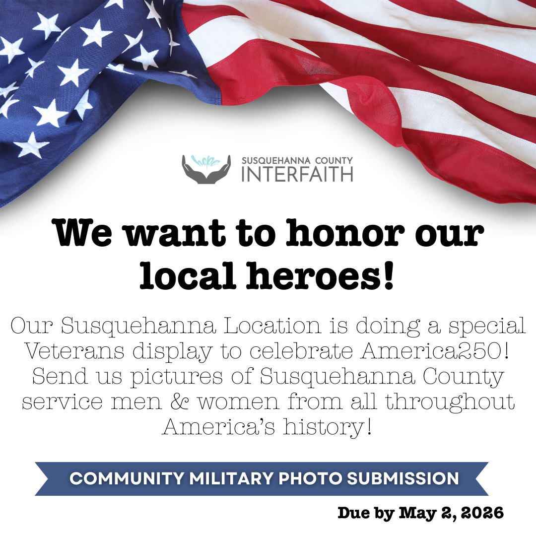 As we look ahead to America 250 Susquehanna County Interfaith wants to honor the brave men and women from our community who have served in the United States military.